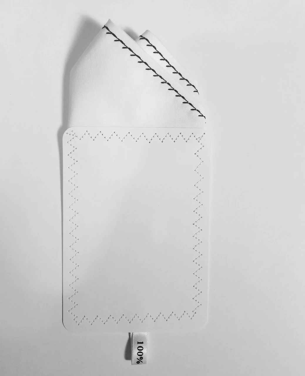 Dress up your suit or sport coat with a pre-folded pocket square. It’s easy to use and looks like a well placed pocket square. Just slip the insert into your breast pocket and adjust height to your taste. Trim bottom of card if you want less pocket square showing.