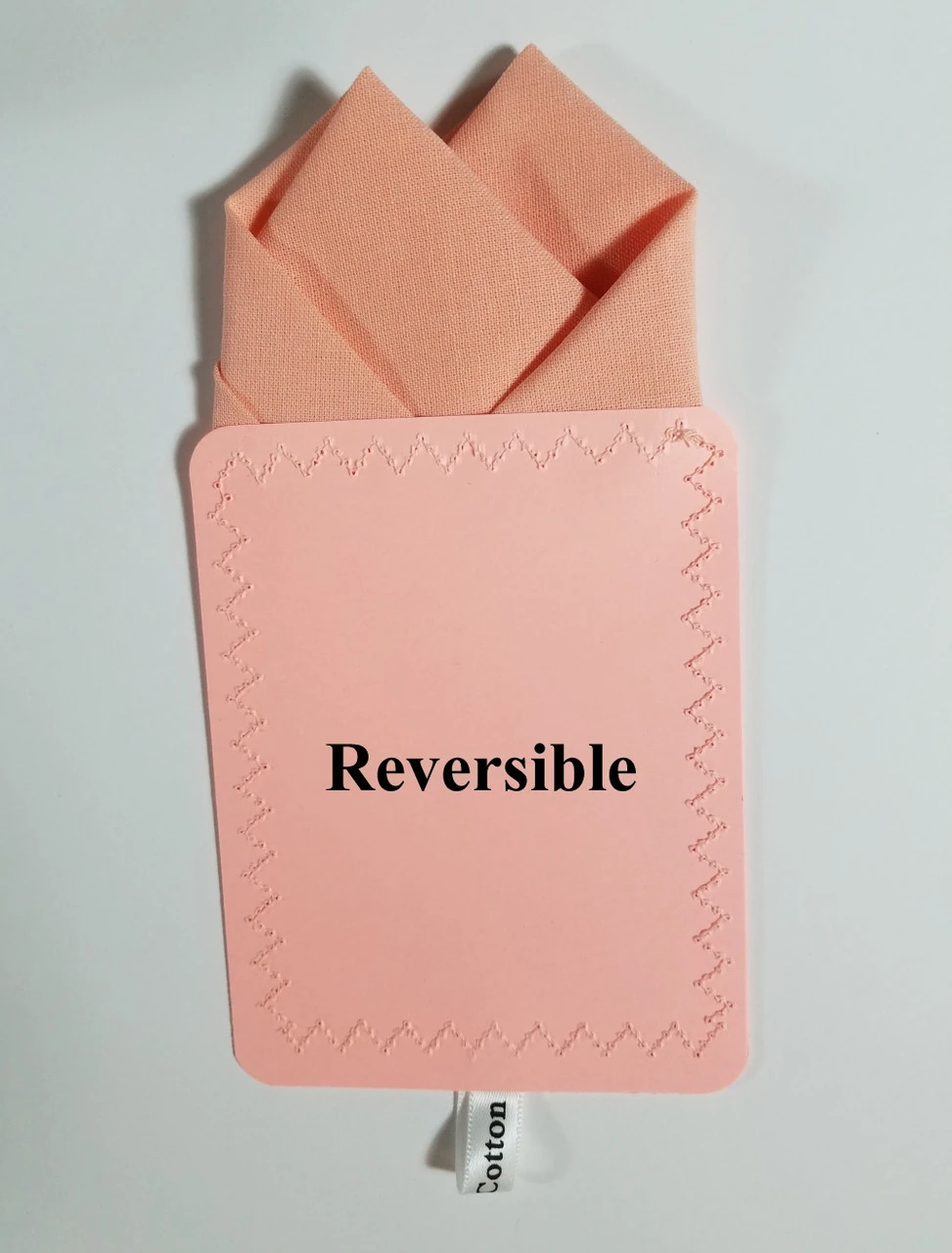 Dress up your suit or sport coat with a pre-folded pocket square. It’s easy to use and looks like a well placed pocket square. Just slip the insert into your breast pocket and adjust height to your taste. Trim bottom of card if you want less pocket square showing.