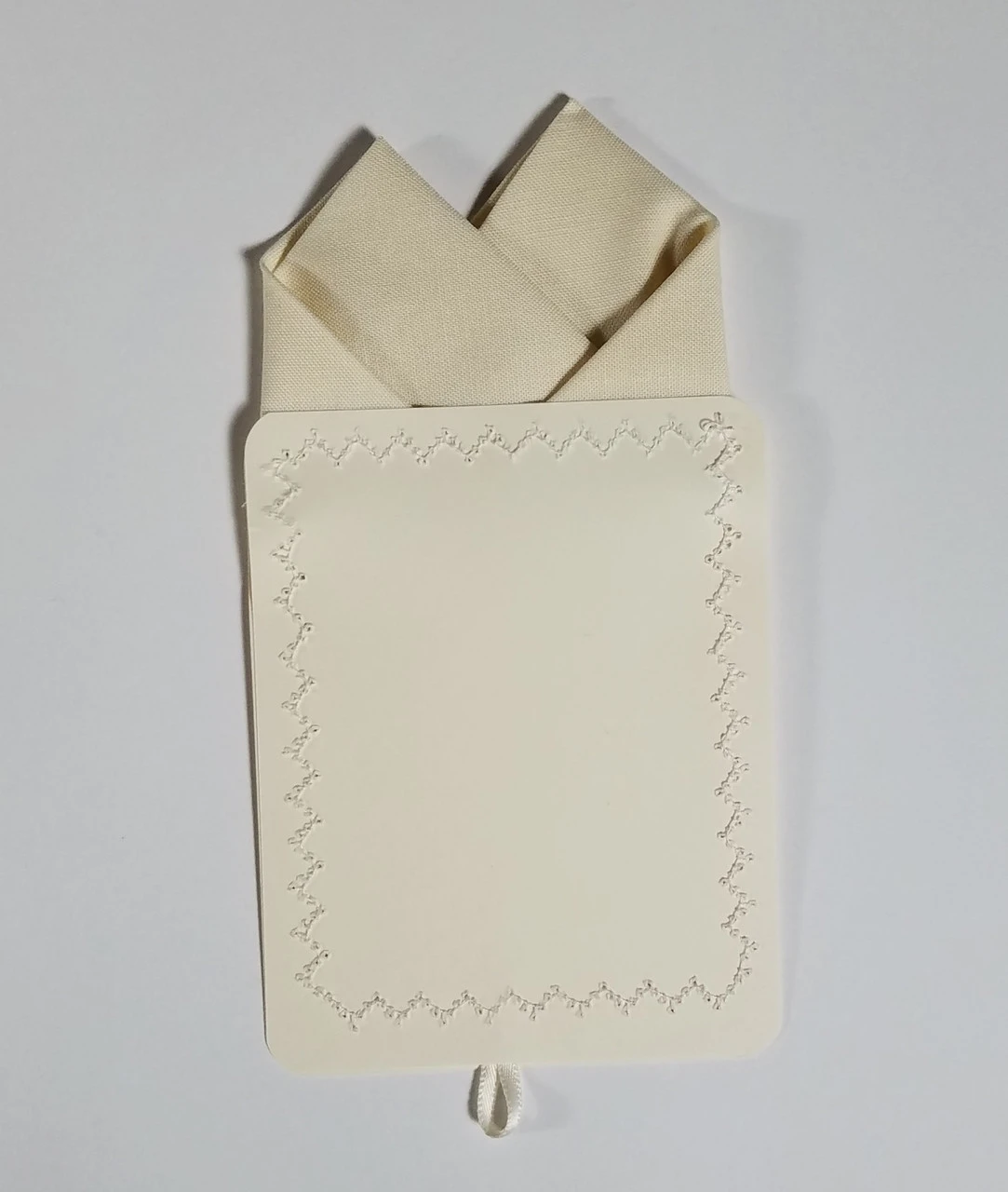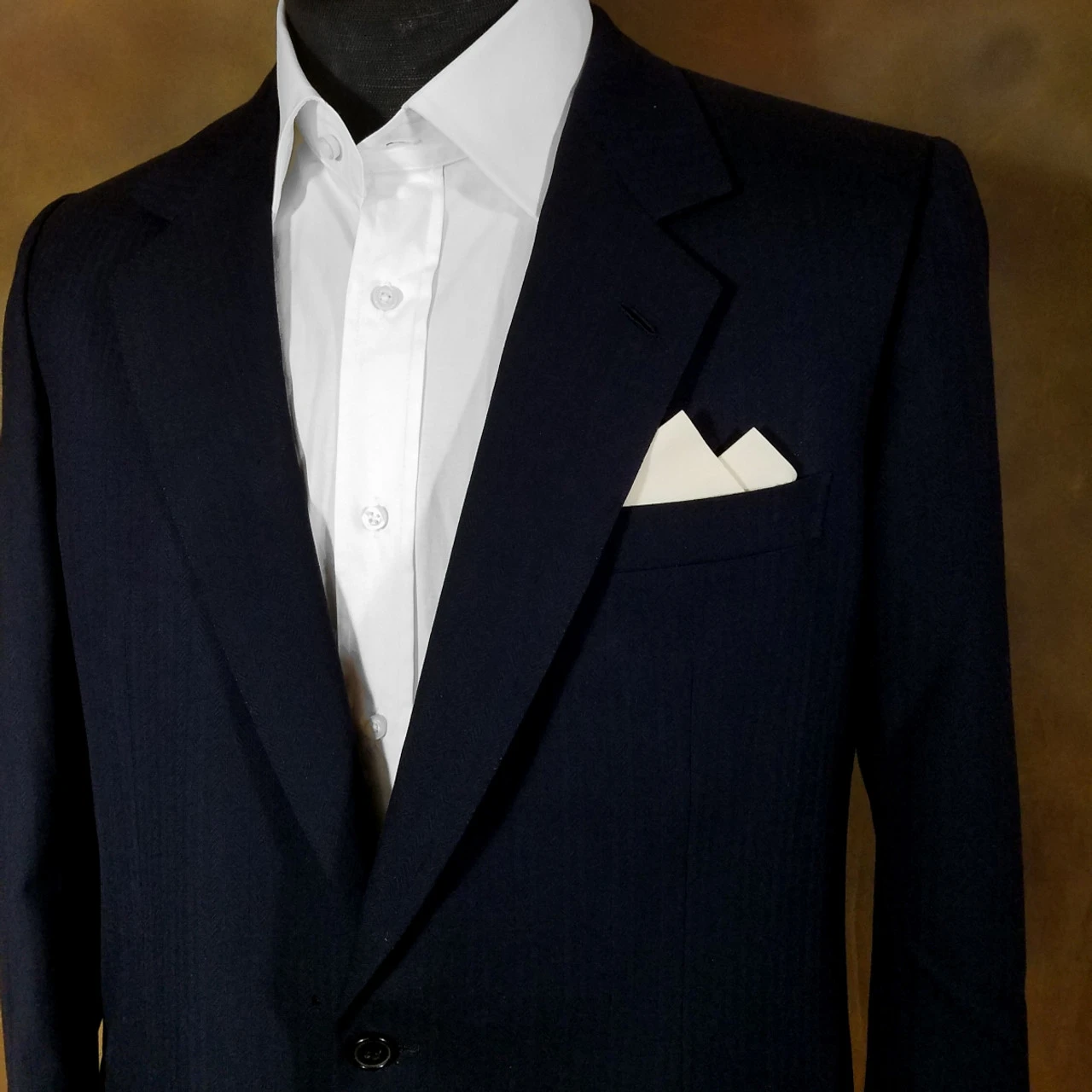 Dress up your suit or sport coat with a pre-folded pocket square. It’s easy to use and looks like a well placed pocket square. Just slip the insert into your breast pocket and adjust height to your taste. Trim bottom of card if you want less pocket square showing.