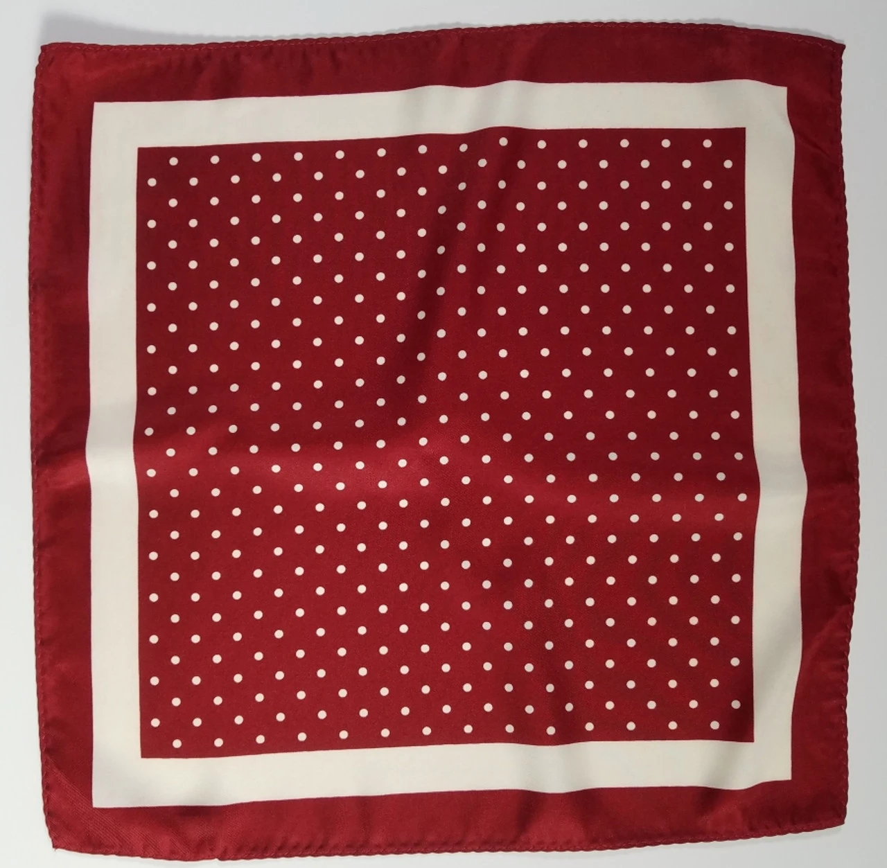 100% Silk Pocket Square – Red & Cream Polka Dot – 12in