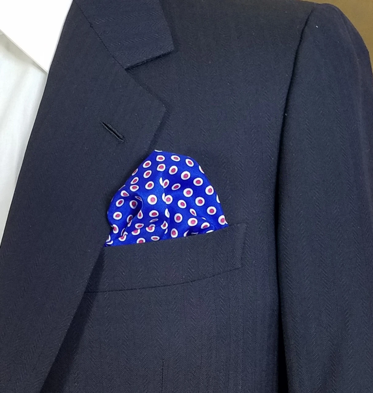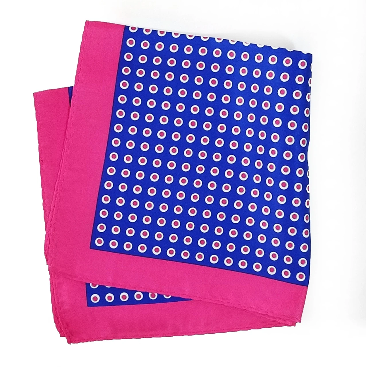 100% Silk Pocket Square – Royal Blue & Hot Pink Polka Dot 12.5in X 12.5in