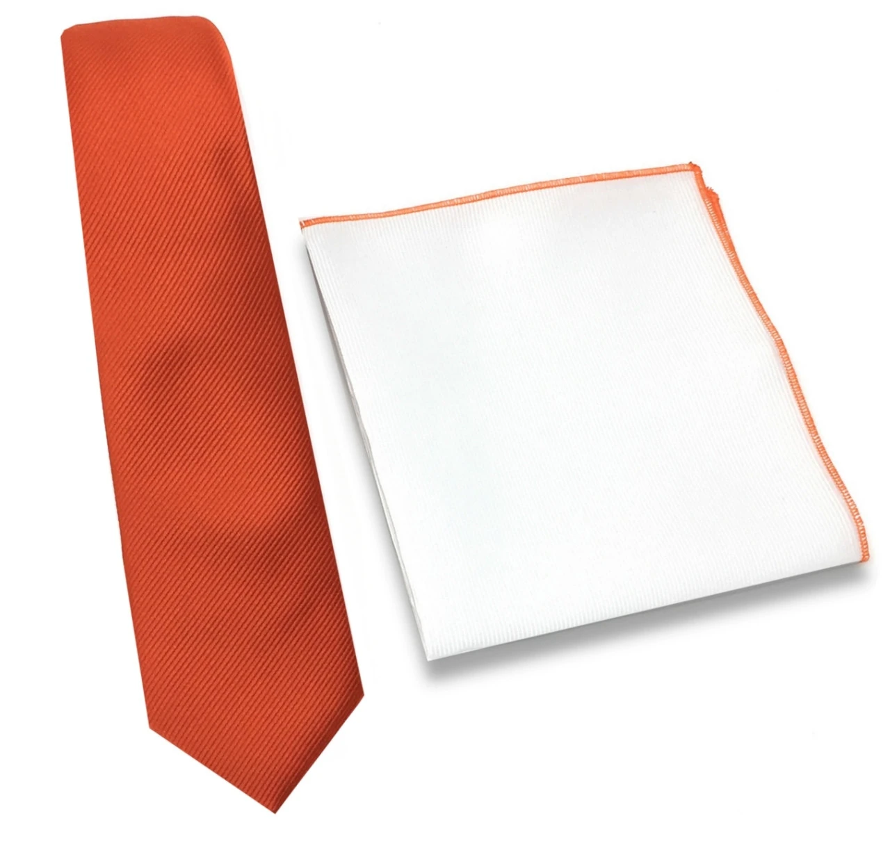 Antonia 100% Silk Tie W/Matching Trimmed Pocket Square – Orange