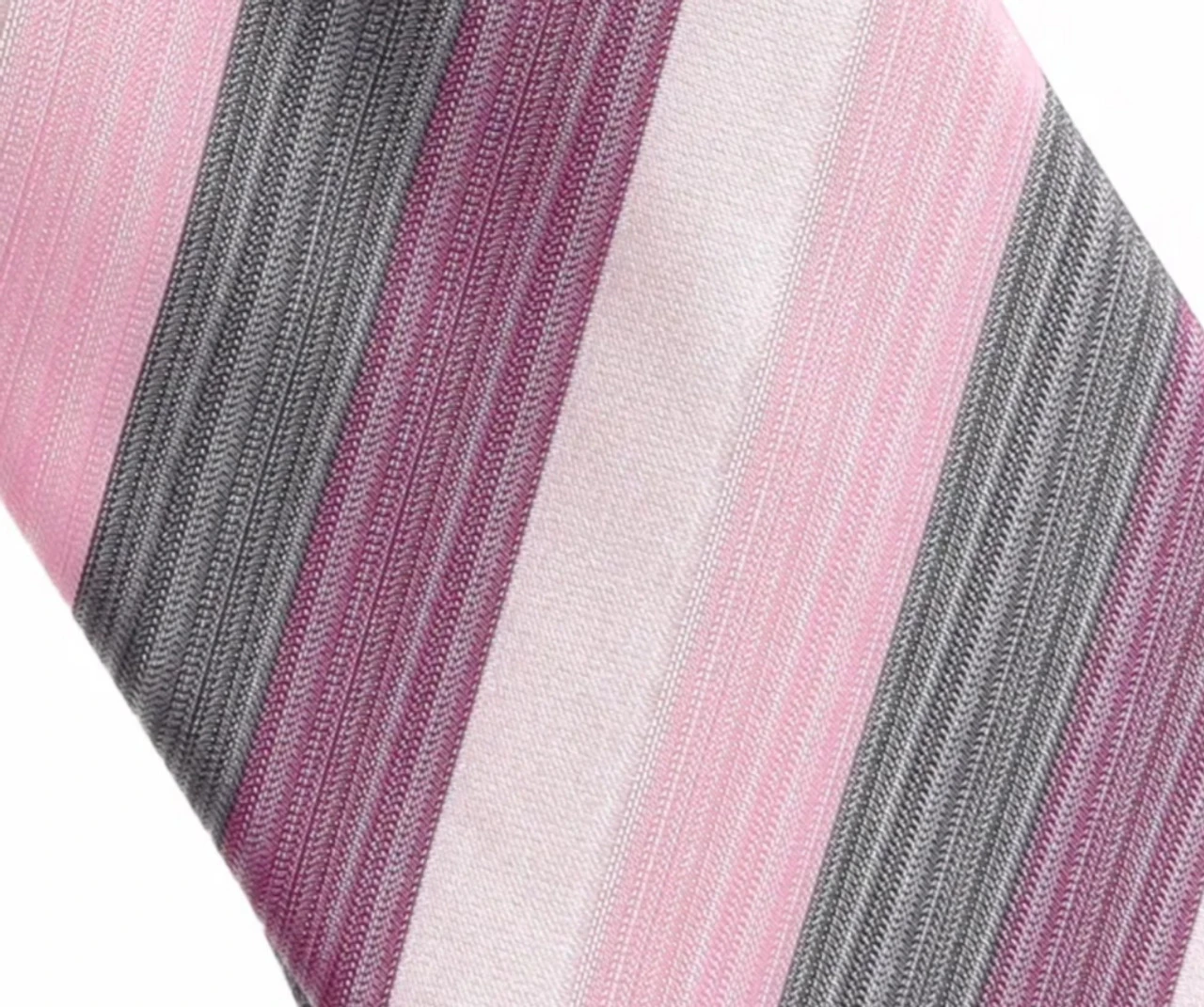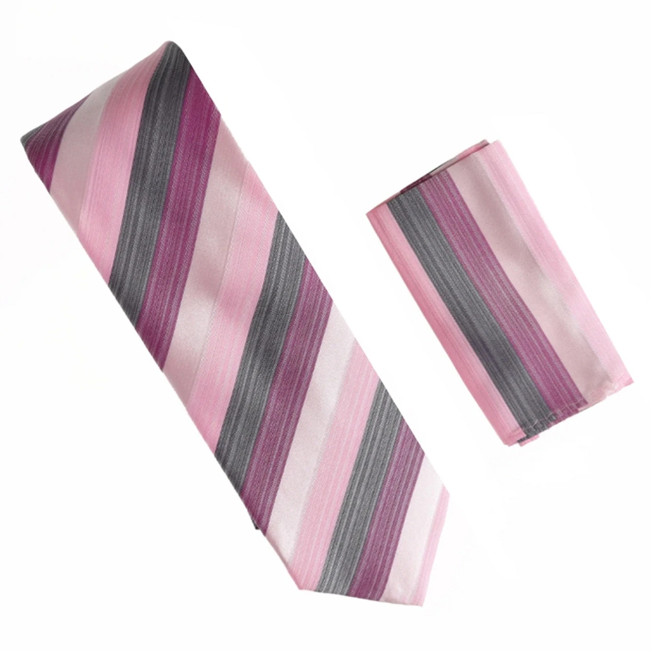 Antonia 100% Silk Tie W/Pocket Square – Various Pink & Grey Stripes