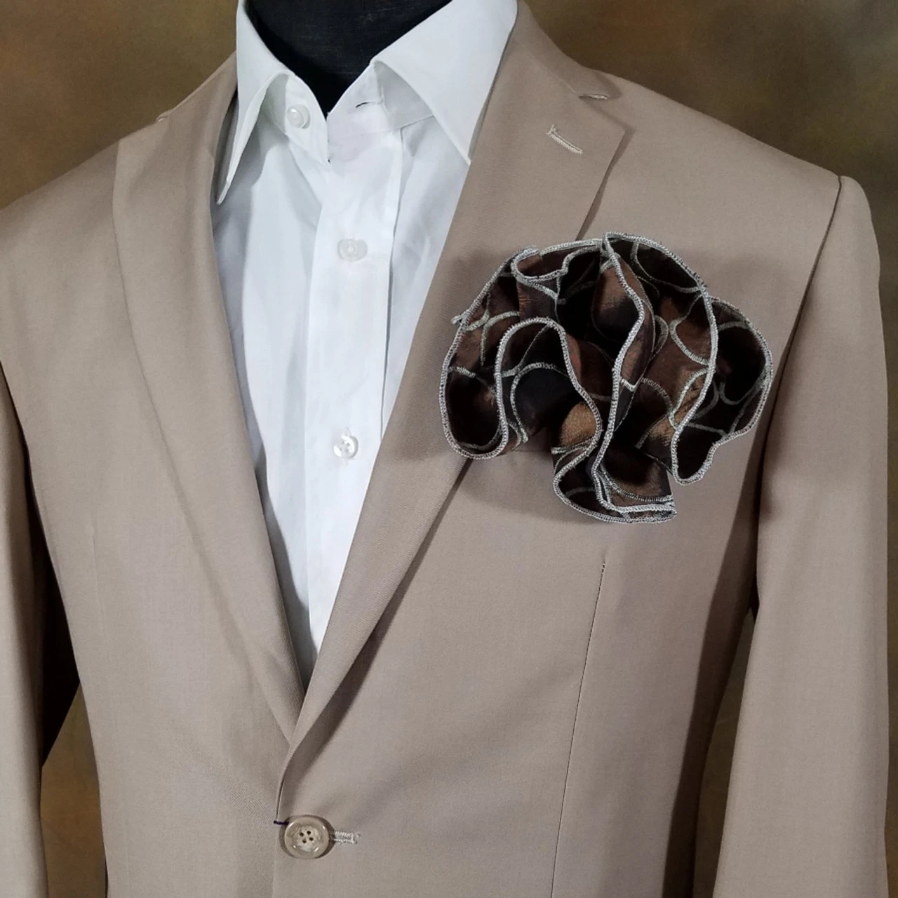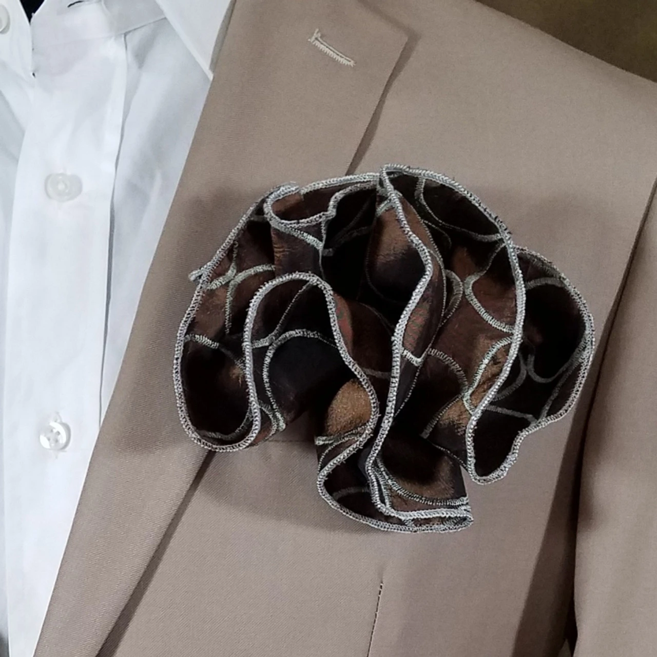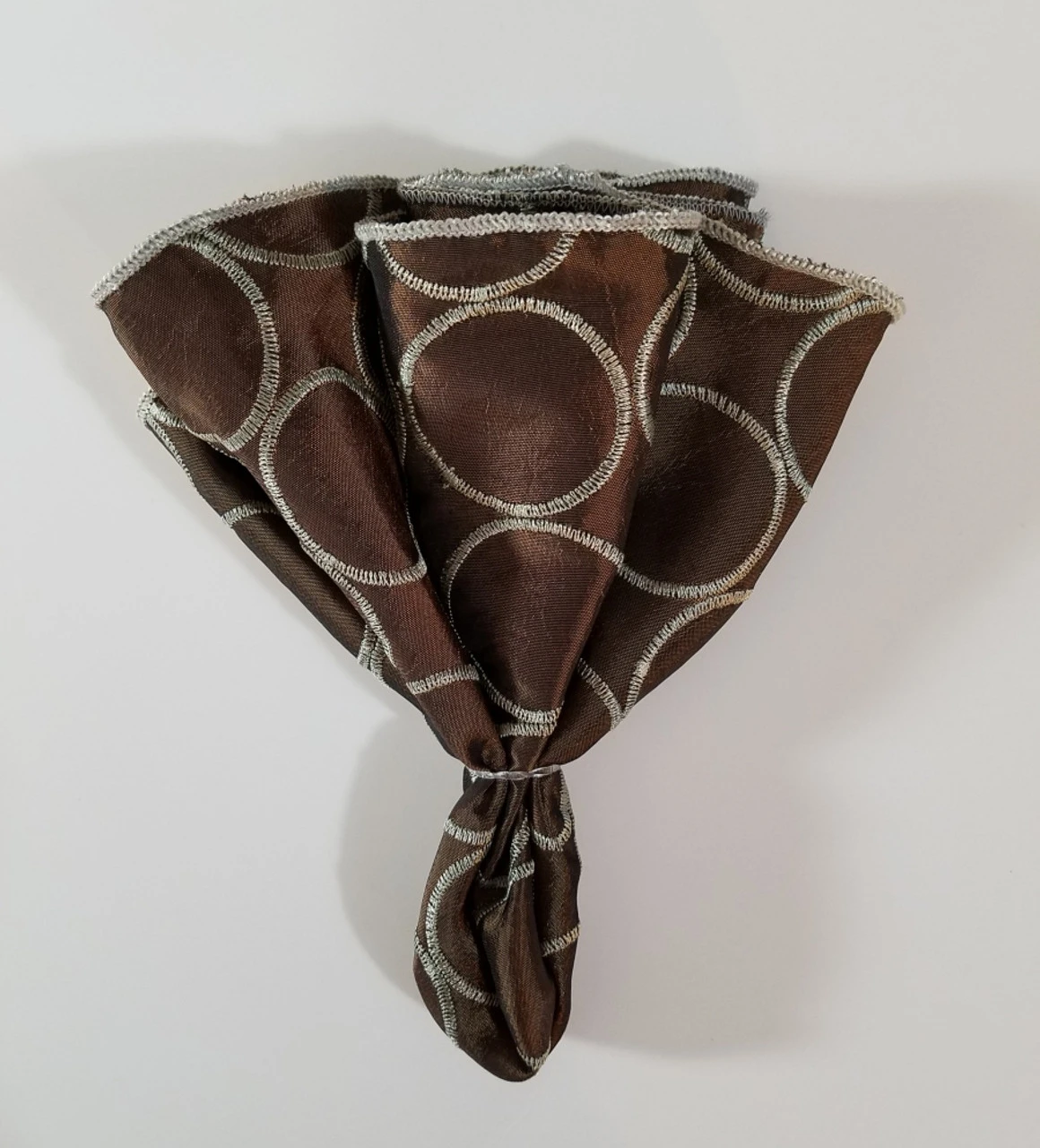 Antonio Ricci 2-in-1 Bronze Circles 100% Dupioni Silk Pouf Round Pocket Square