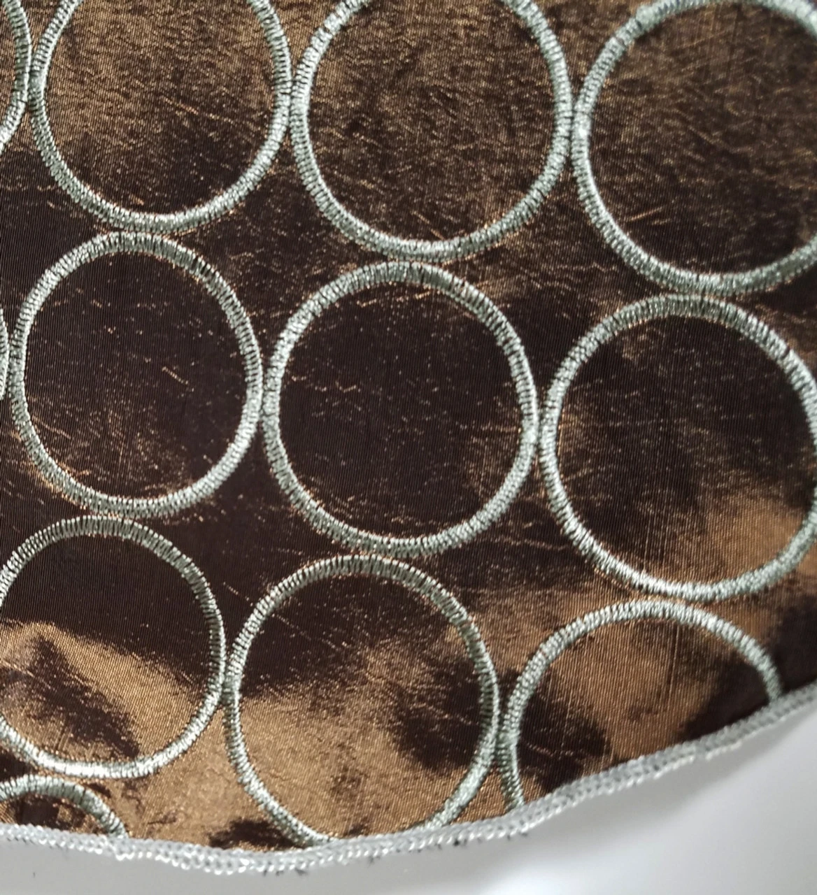 - Color(s): Bronze-Brown Tone with Grey Toned Embroidered Circles