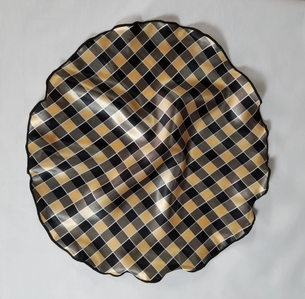 Antonio Ricci 2-in-1 Pouf Round Pocket Square – Black & Tan Check