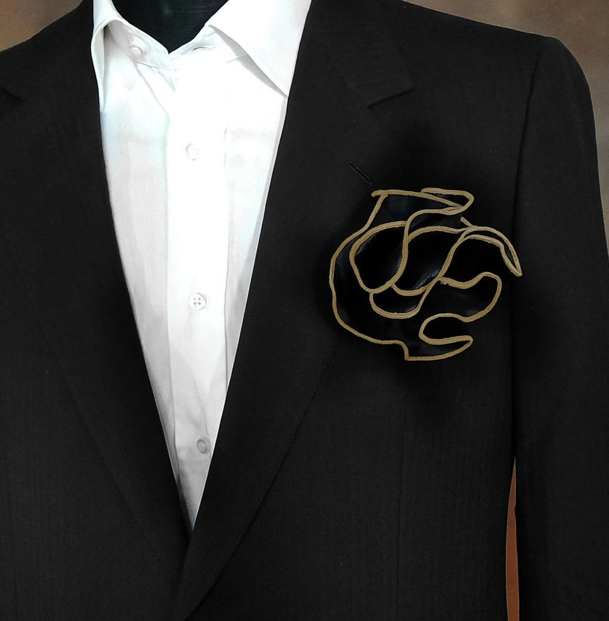 Antonio Ricci 2-in-1 Pouf Round Pocket Square – Dark Gold Trim On Black