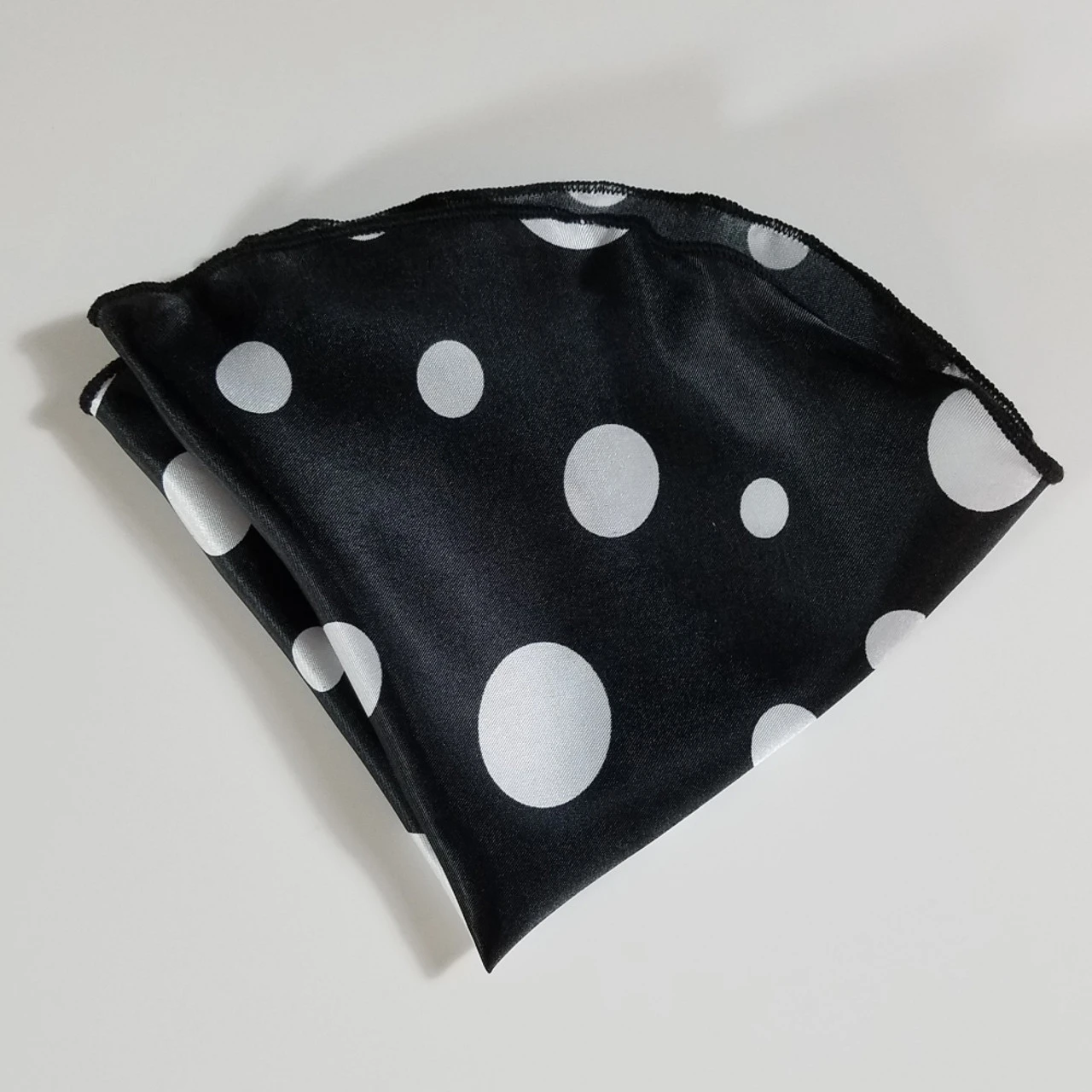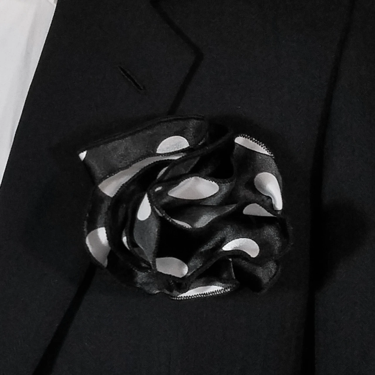 Antonio Ricci 2-in-1 Pouf Round Pocket Square – White On Black Multi-Size Dots