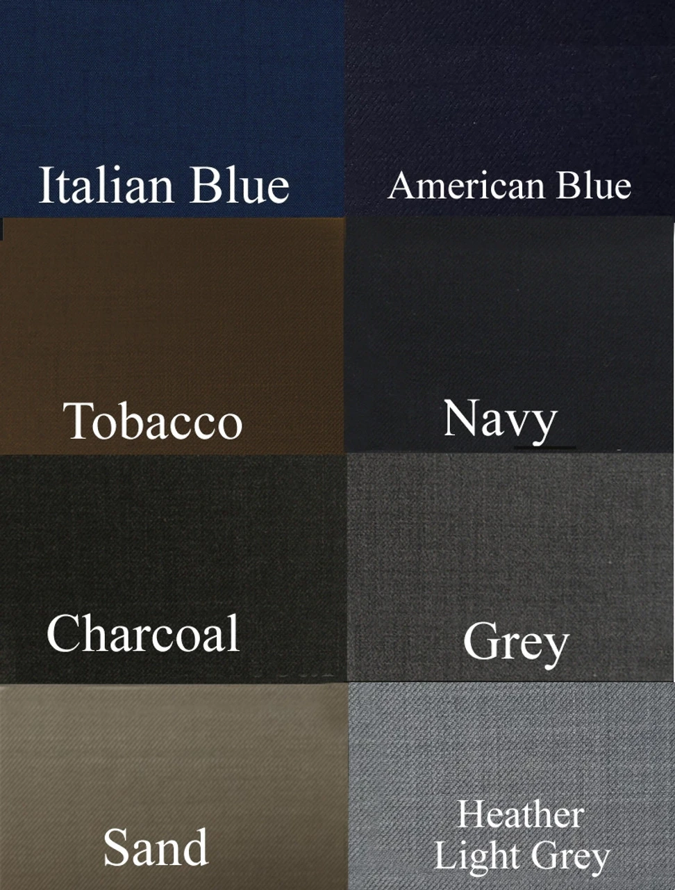 | Color Required | Black, Navy, American Blue, Italian Blue, Charcoal, Grey, Sand |
