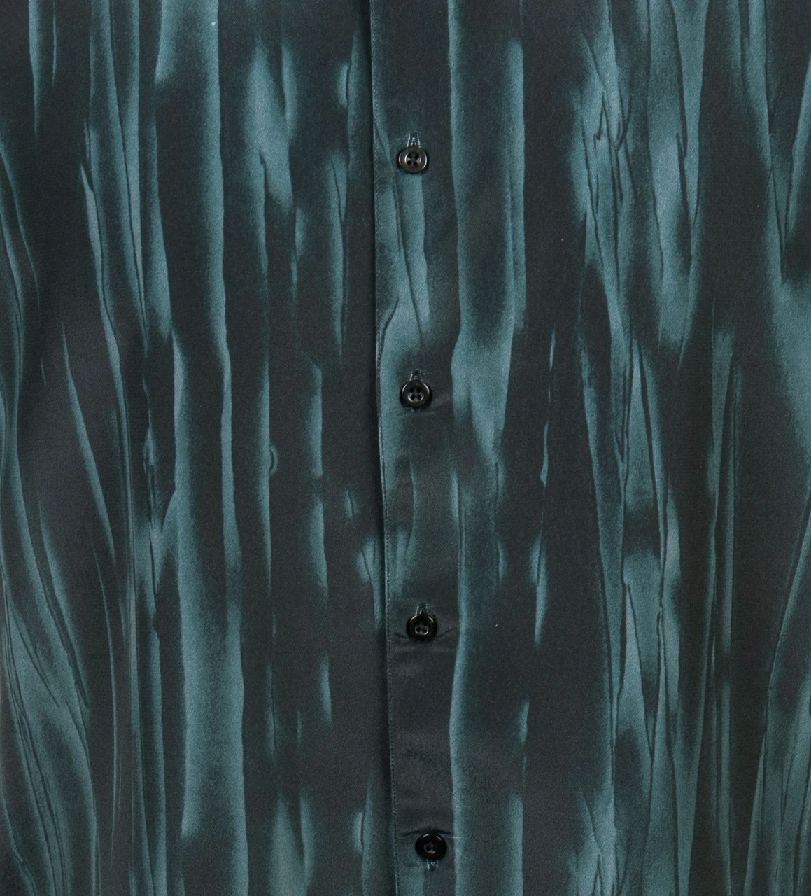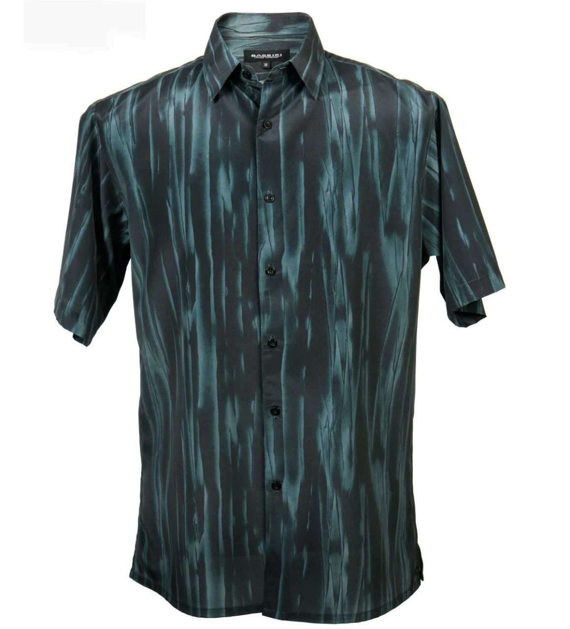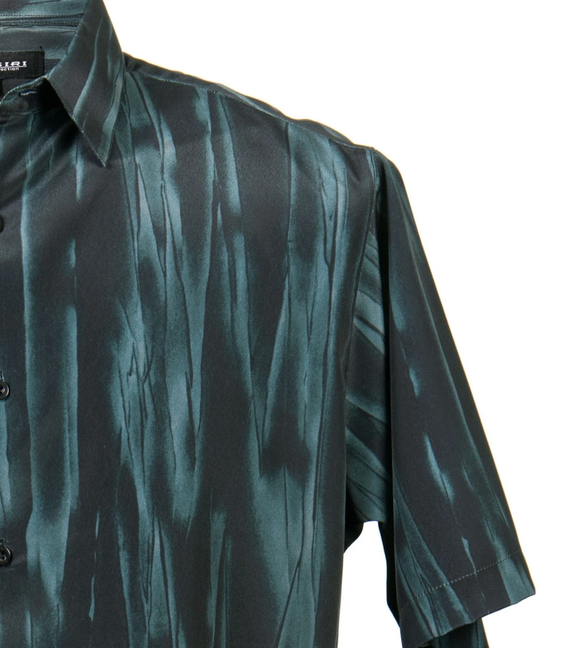 Bassiri Dark Green Abstract Botanical Design Short Sleeve Camp Shirt