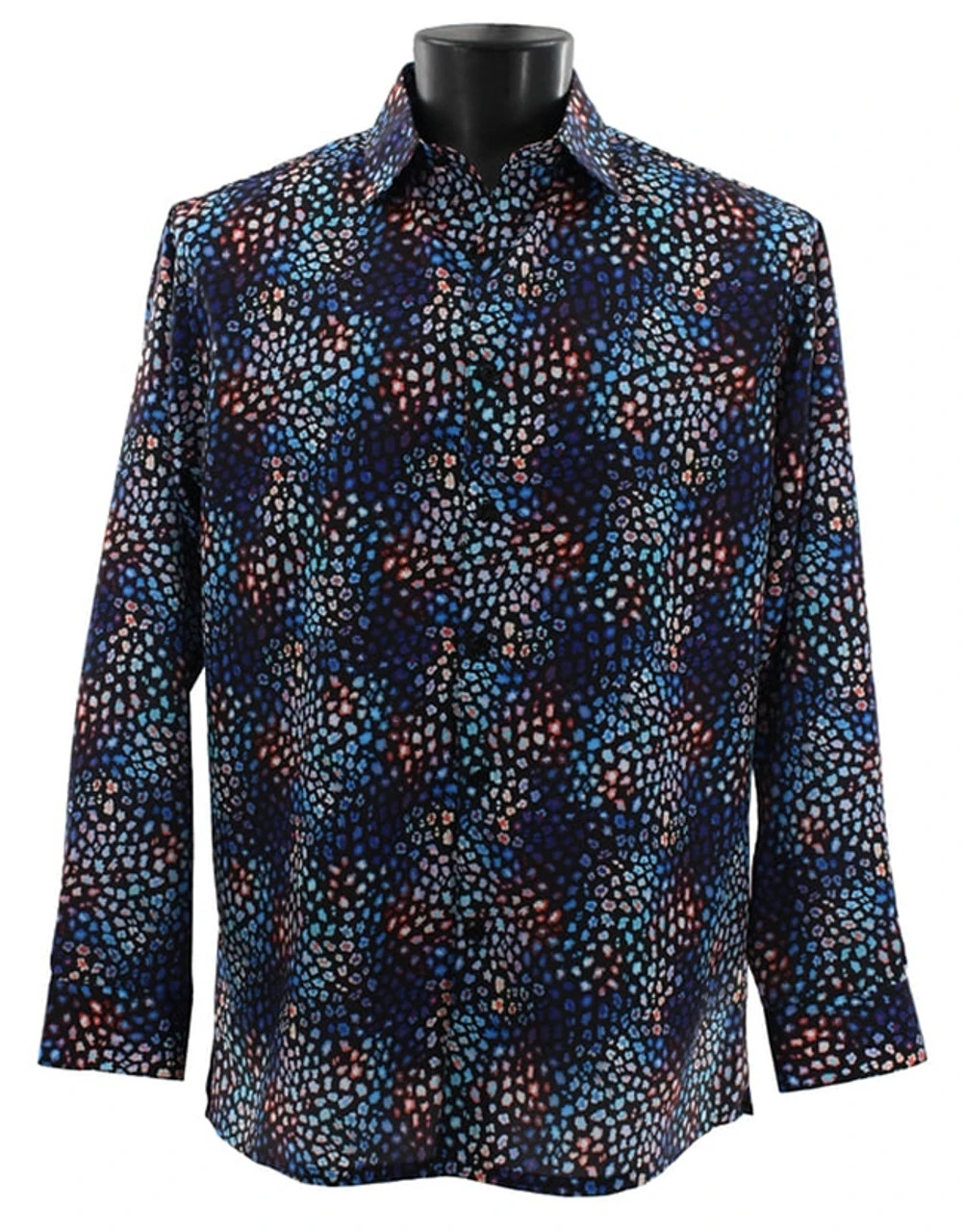 Bassiri Long Sleeve Camp Shirt – Abstract Speckles On Dark Blue