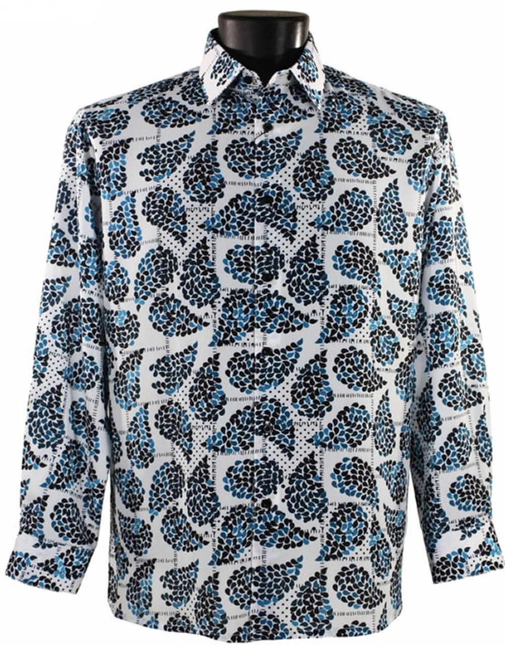 Bassiri Long Sleeve Camp Shirt – Blue & Black Fancy Paisley Design