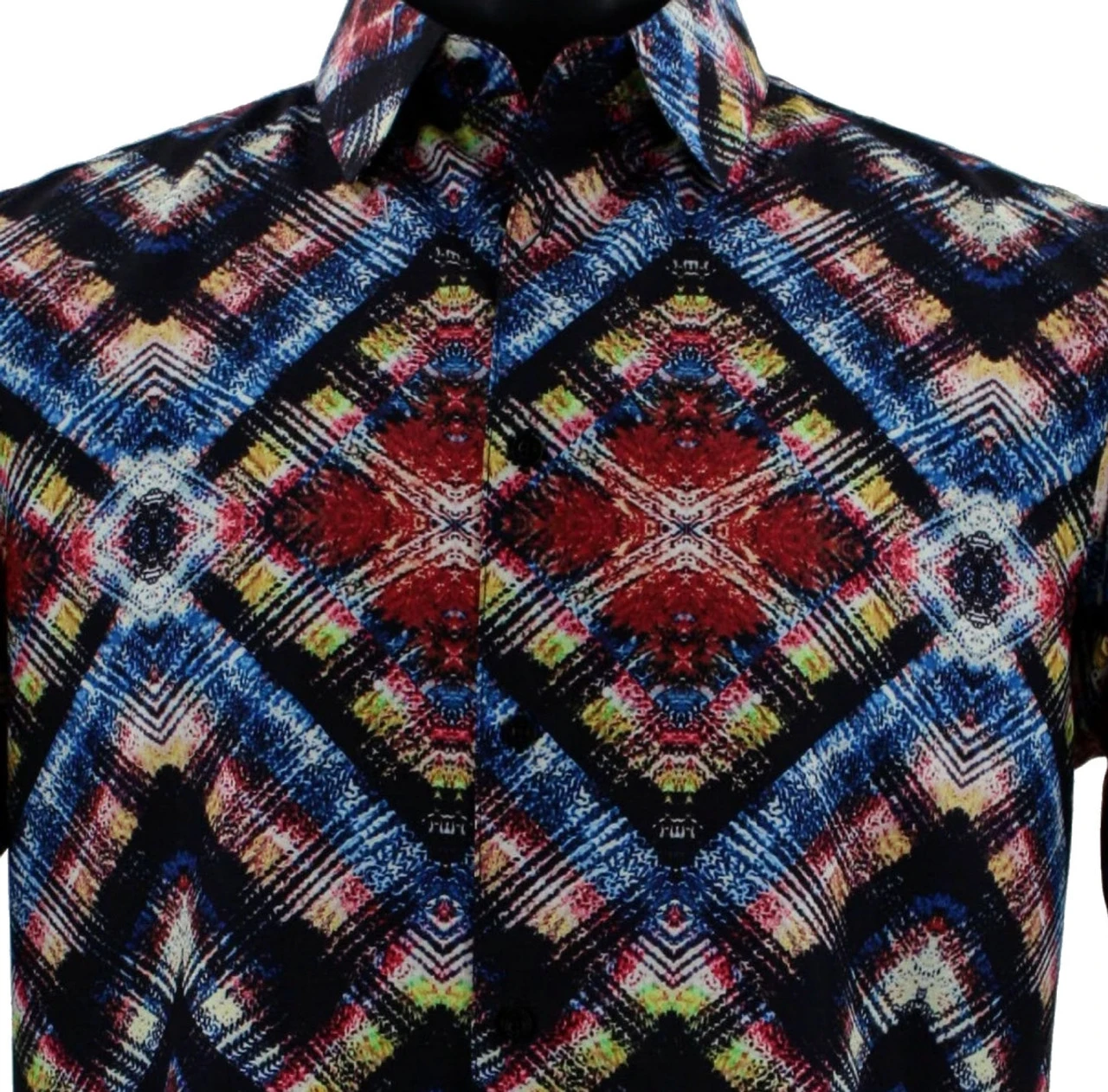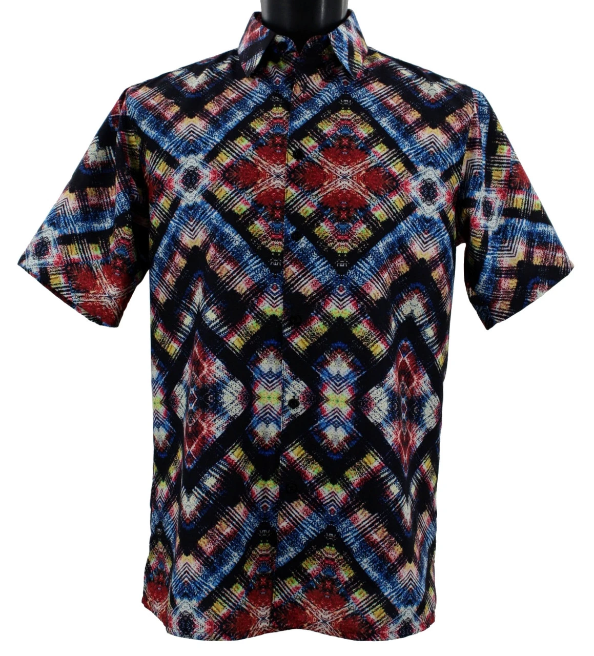 Bassiri Short Sleeve Camp Shirt – Black With Red Diamond Abstract