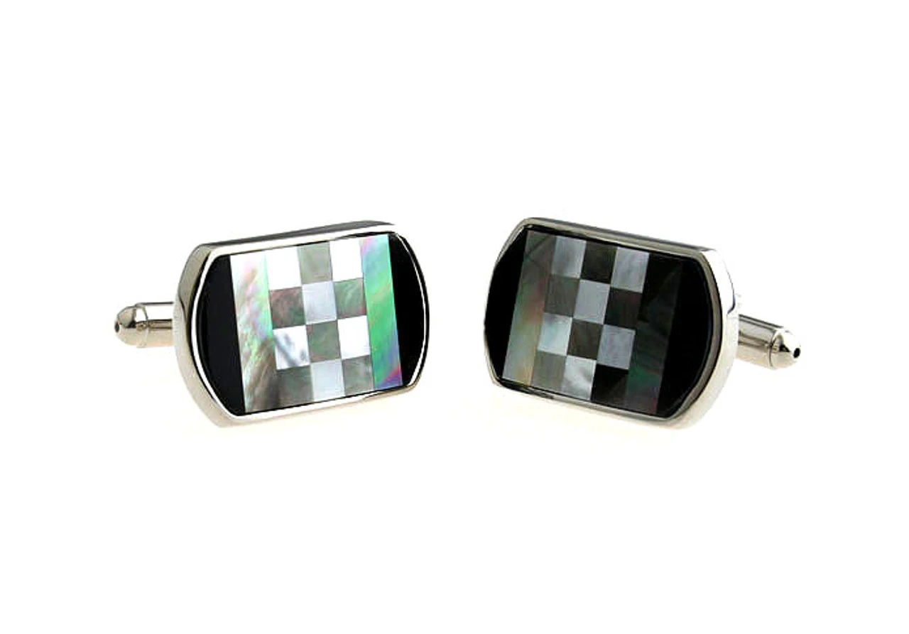 Black Onyx And Mother Of Pearl Cufflinks (V-CF-G60446)