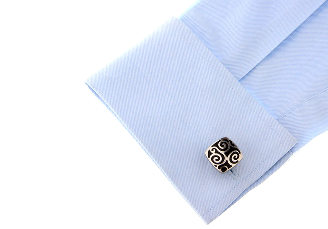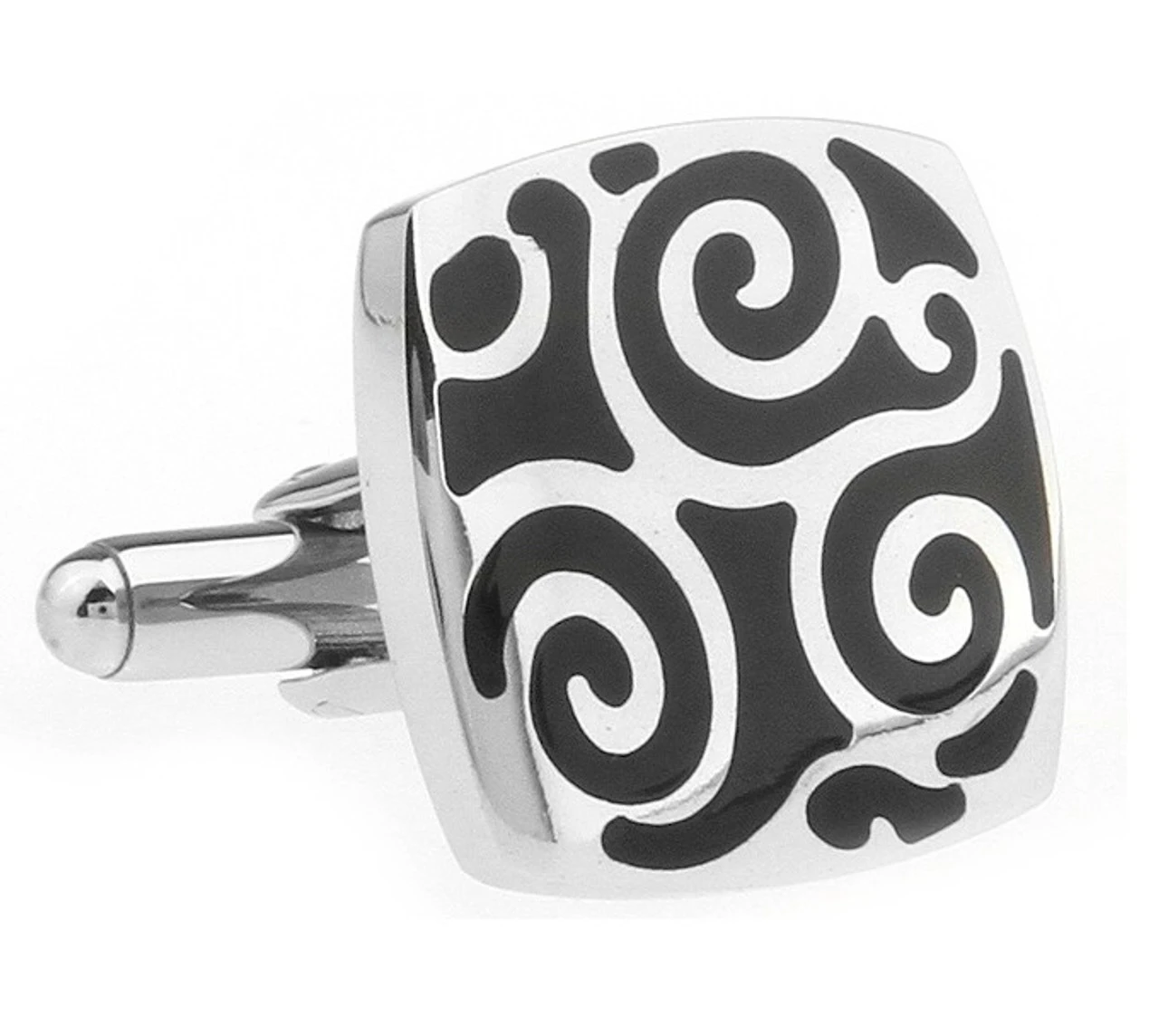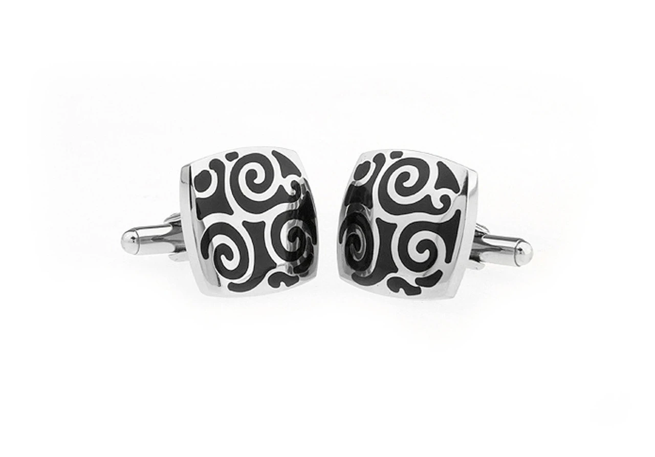 Black Scroll Stainless Steel Cufflinks (V-CF-230082SS)