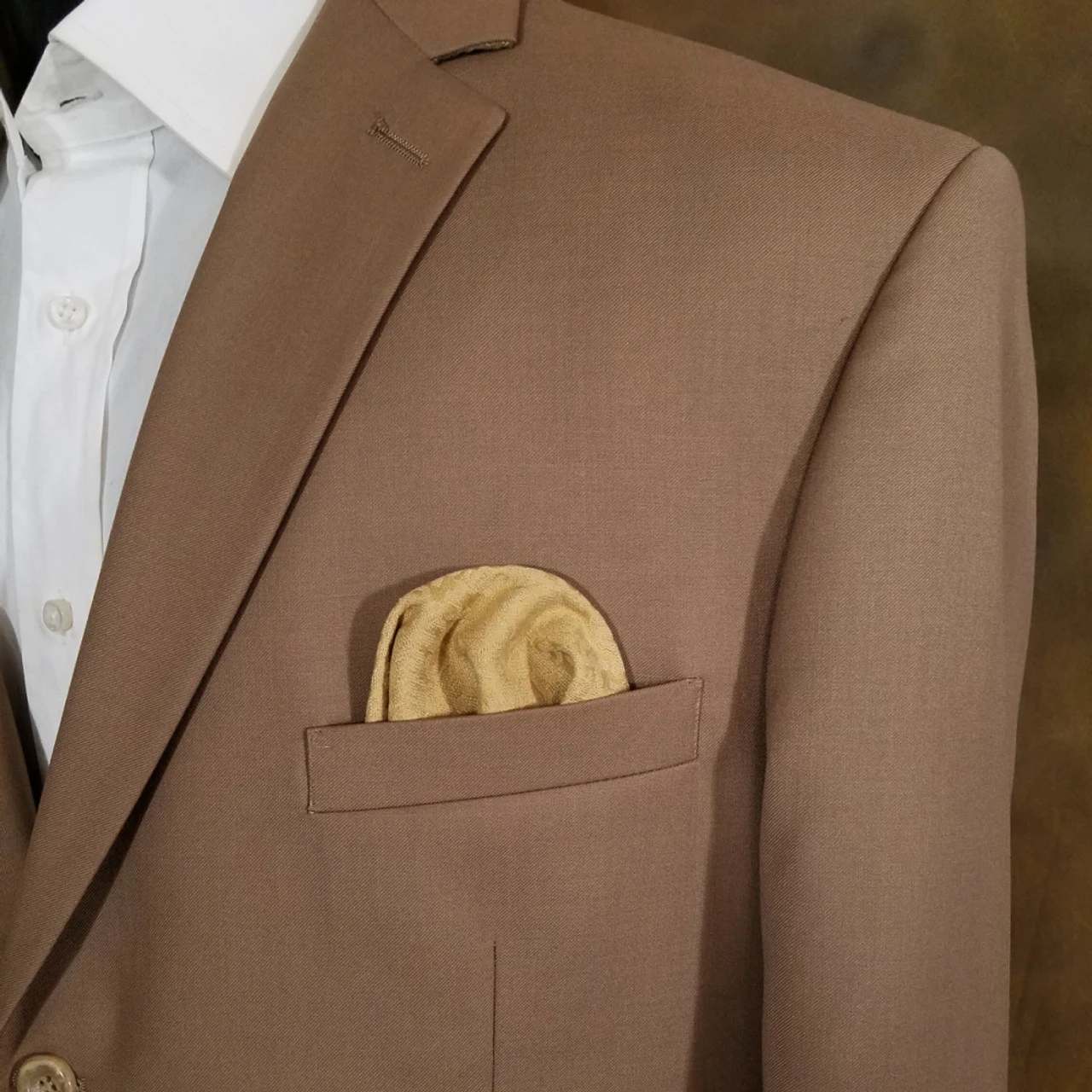 Dress up your suit or sport coat with a pre-folded pocket square. It’s easy to use and looks like a well placed pocket square. Just slip the insert into your breast pocket and adjust height to your taste. Trim bottom of card if you want less pocket square showing.