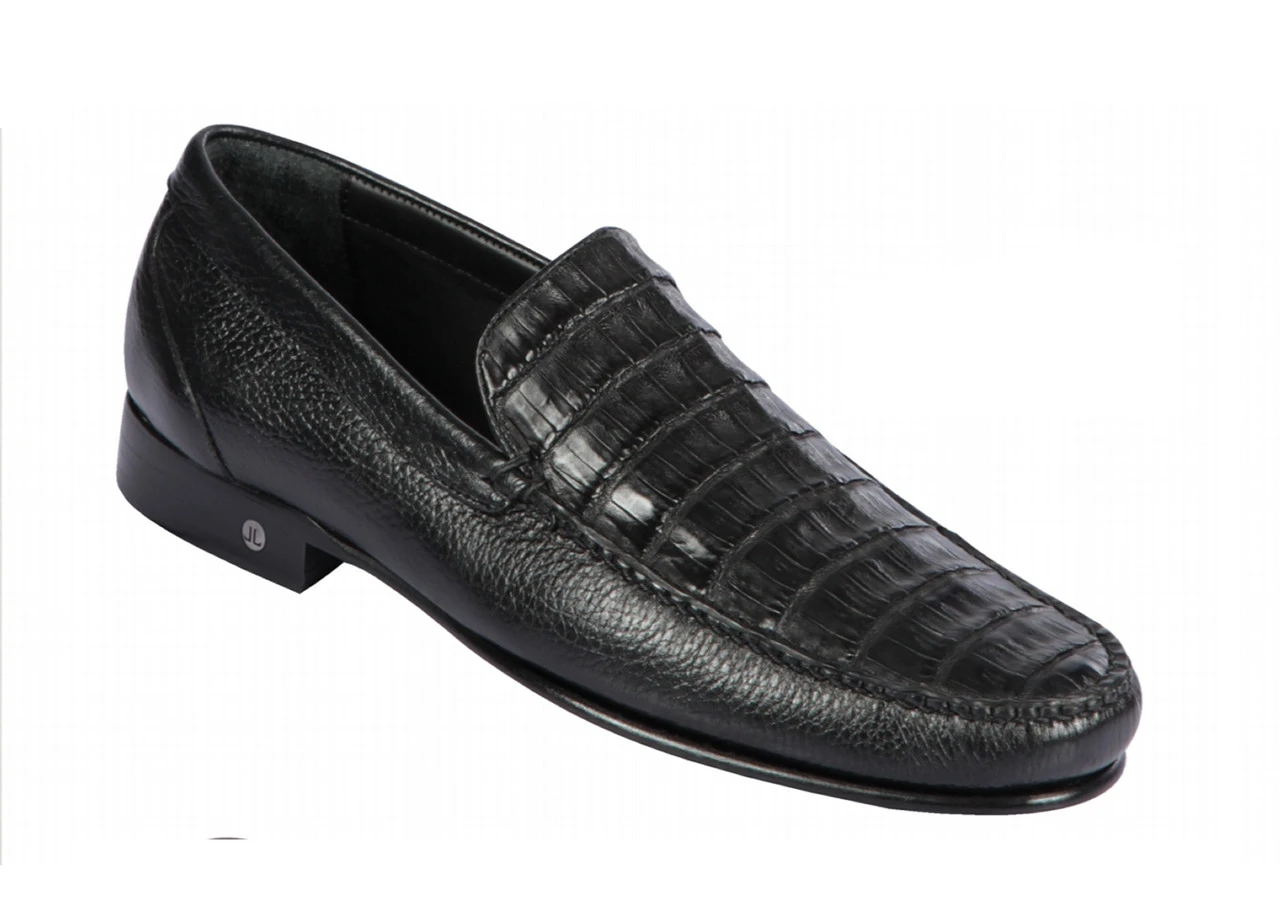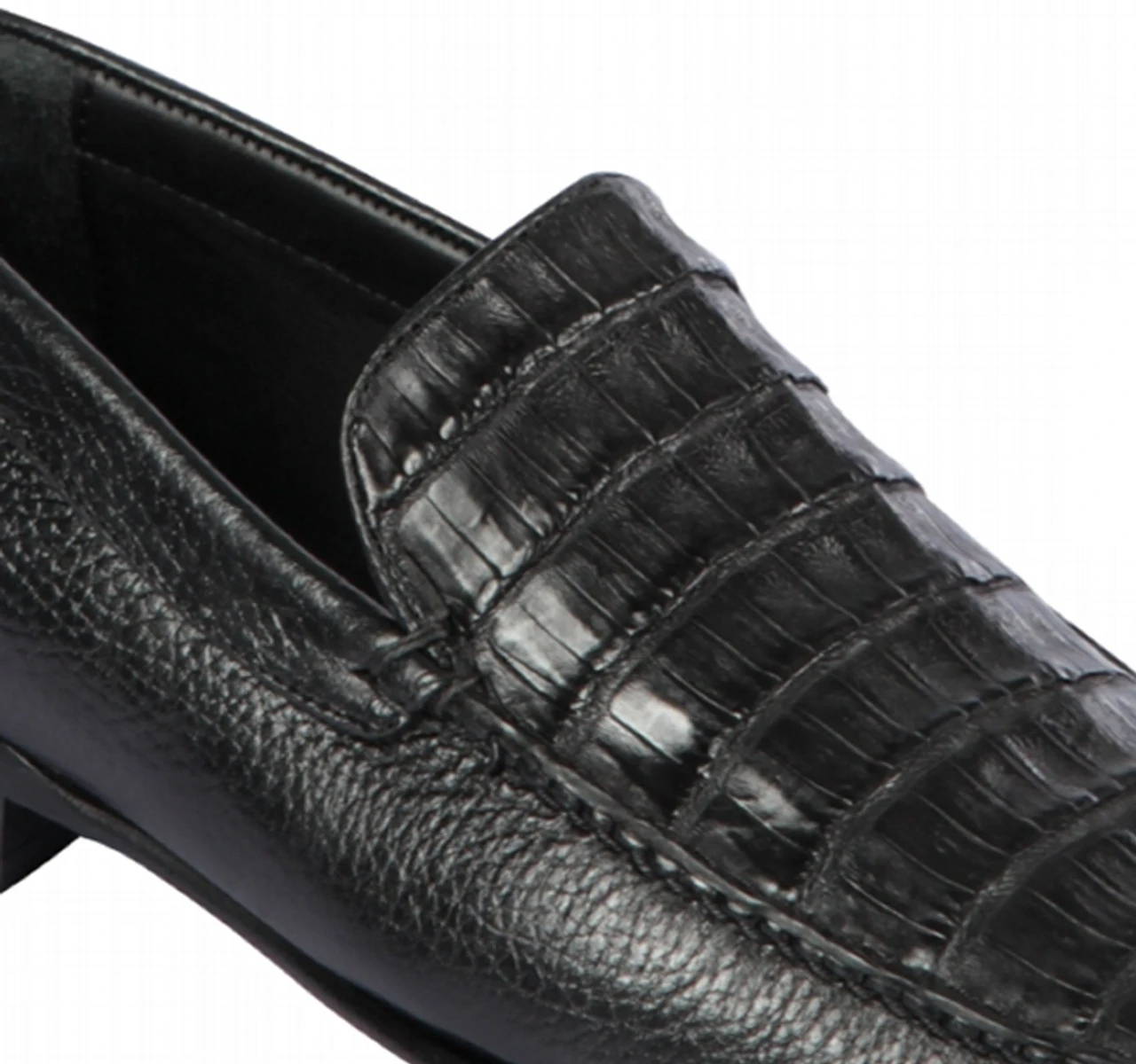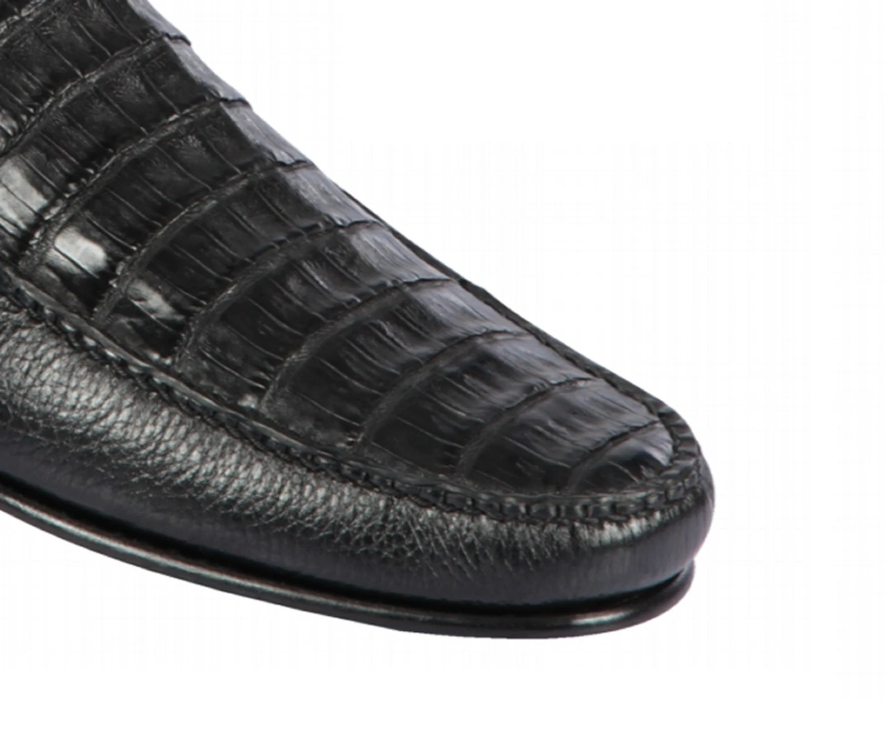 Lombardy – Genuine Caiman Crocodile & Leather Loafer – Black