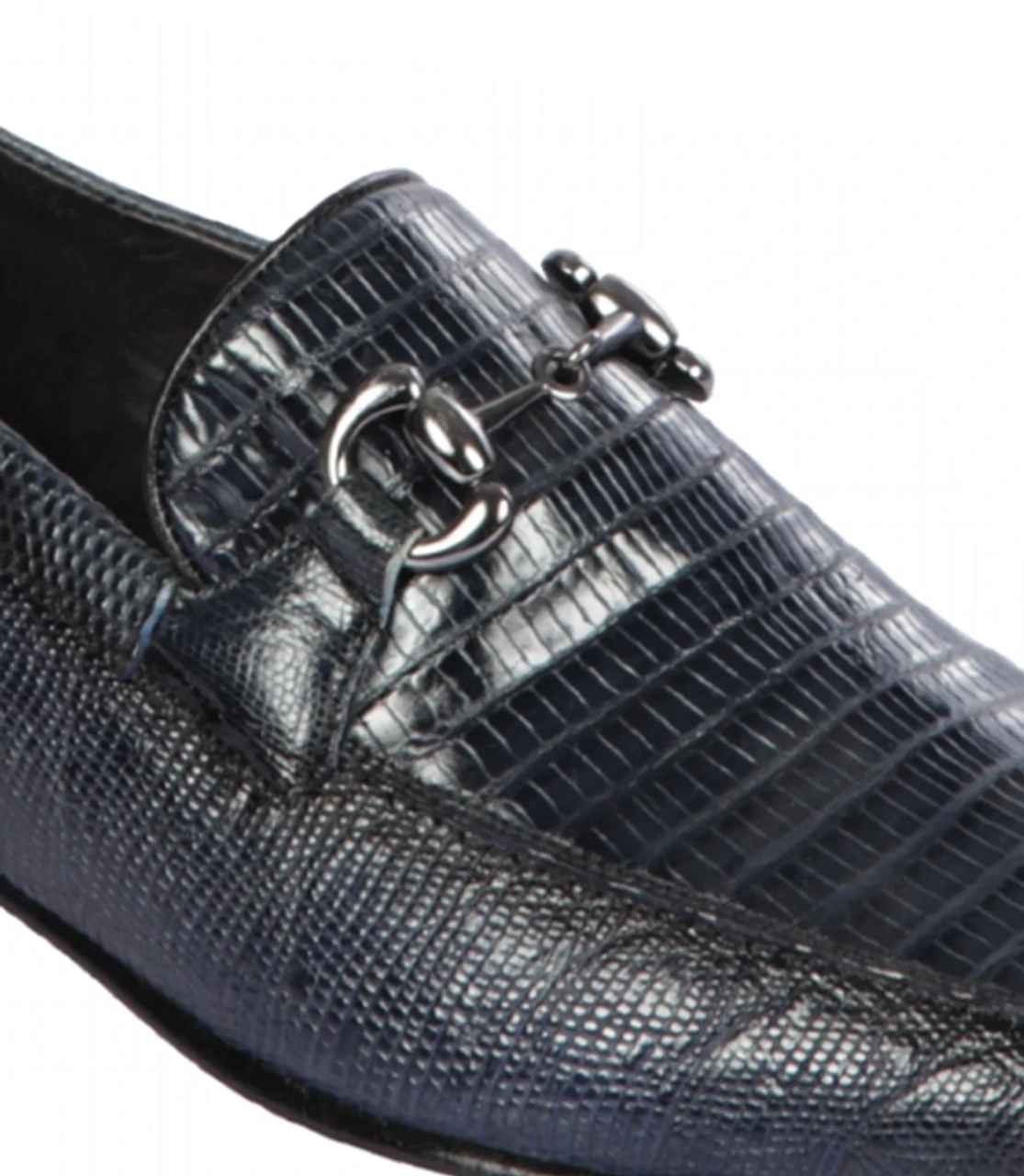 Lombardy – Genuine Teju Lizard Horsebit Dress Loafer – Navy