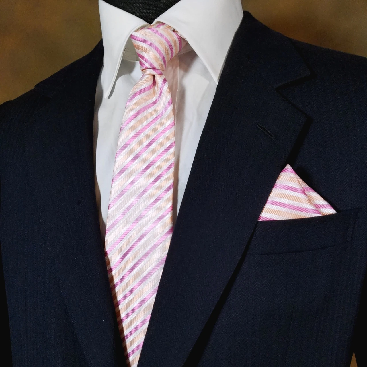 Luciano Ferritti Silk Tie W/Pocket Square – Pink & Peach Stripes