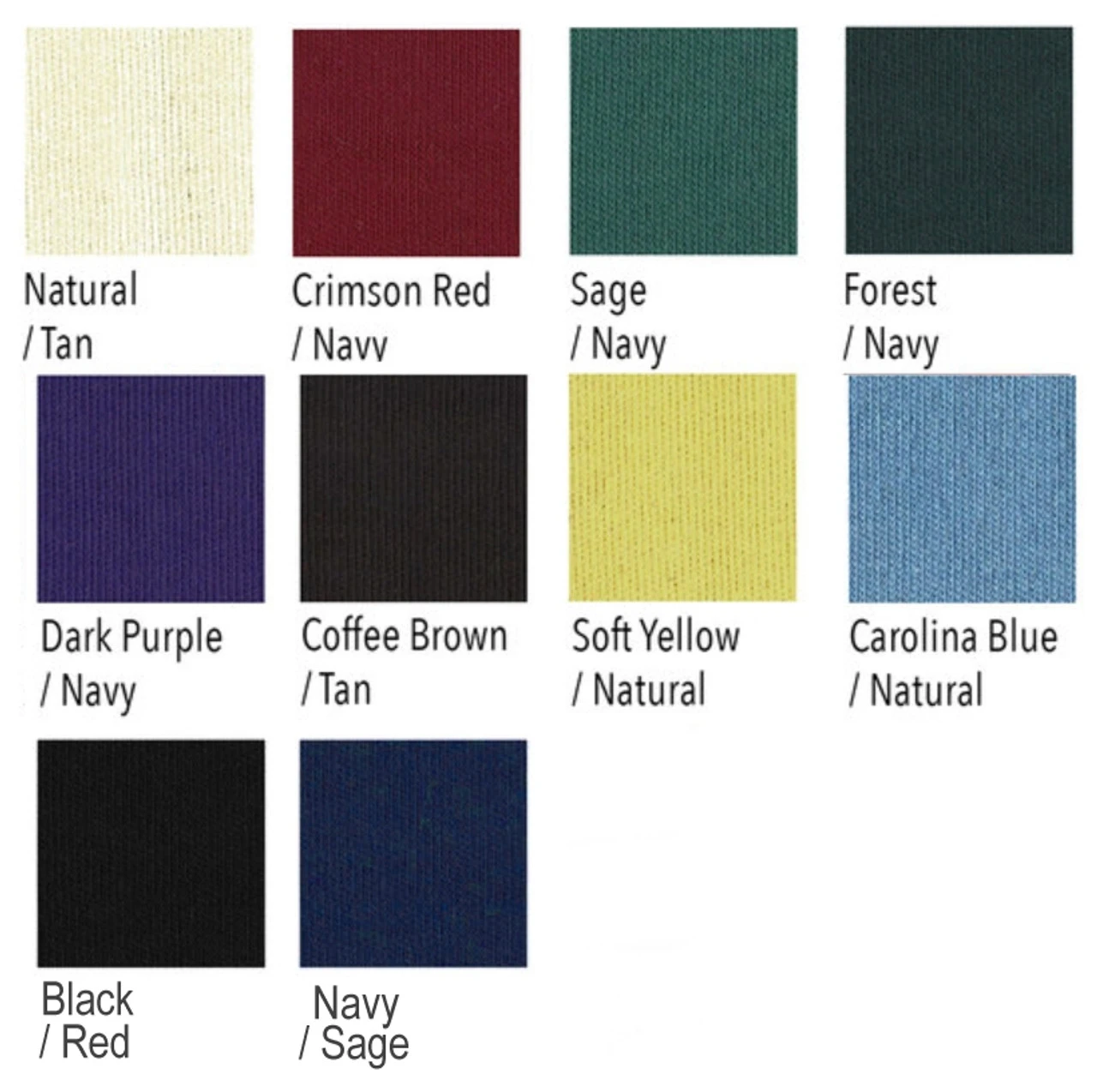 | Color Required | Black w/Red, Black w/Light Blue, Carolina Blue w/Natural, Coffee Brown w/Tan, Crimson Red w/Navy, Dark Purple w/Navy, Forest Green w/Navy, Natural w/Tan, Navy w/Sage, Navy with/Light Blue, Sage w/Navy |