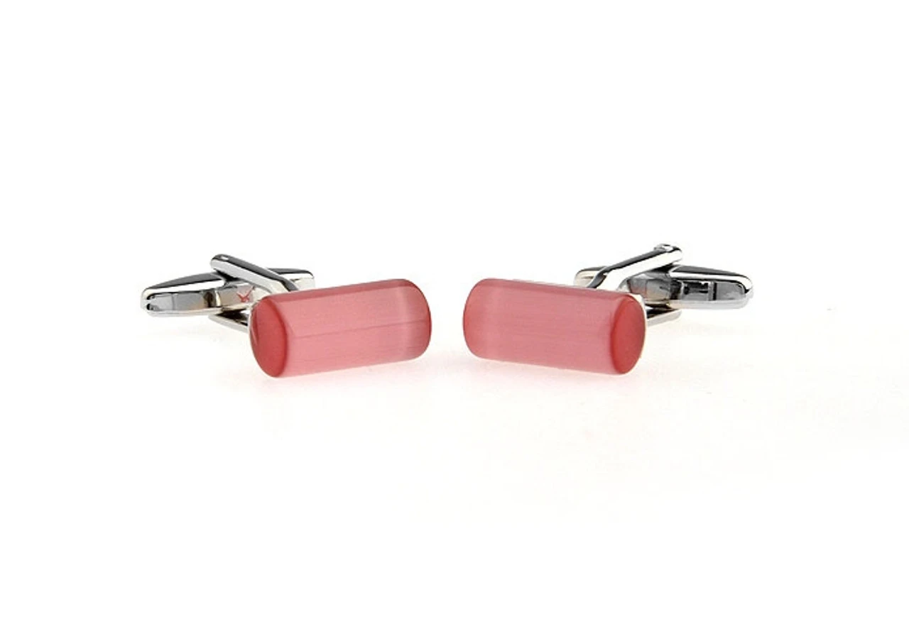 Pink Tone Cat’s Eye Stone Cylinder Cufflinks (V-CF-G50014P)