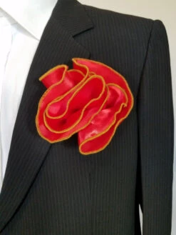 Antonio Ricci 2-in-1 Pouf Round Pocket Square – Gold Trim On Cherry Red