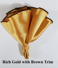 Antonio Ricci 2-in-1 Pouf Round Pocket Square – Brown Trim On Rich Gold