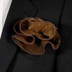 Antonio Ricci 2-in-1 Bronze 100% Jacquard Silk Pouf Round Pocket Square