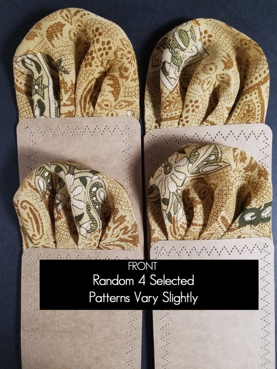 Dress up your suit, tux, blazer or sportcoat with a pre-folded pocket square. It’s easy to use and looks like a well placed full size pocket square. Just slip the insert into your breast pocket! You can also trim the bottom of the card to shorten the height of the pocket square showing.