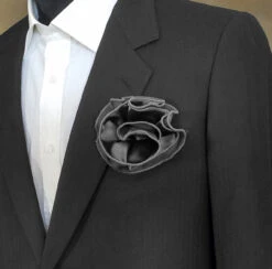 Antonio Ricci 2-in-1 Pouf Round Round Pocket Square – Charcoal On Charcoal