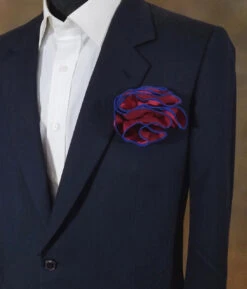Antonio Ricci 2-in-1 Pouf Round Pocket Square – Royal Trim On Garnet Red