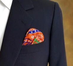 Silk Blend Pocket Square – Large Mod Orange Paisley Design 12.5 In