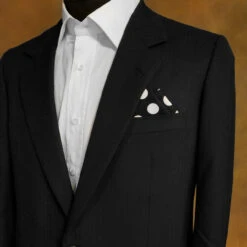 Large White Dots On Black 100% Cotton Pre-Folded Pocket Square Handkerchief Insert – 2 Point