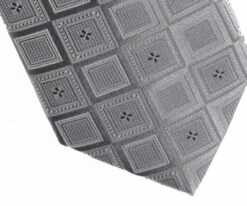 Antonia 100% Silk Tie W/Pocket Square – Grey Medallion Pattern