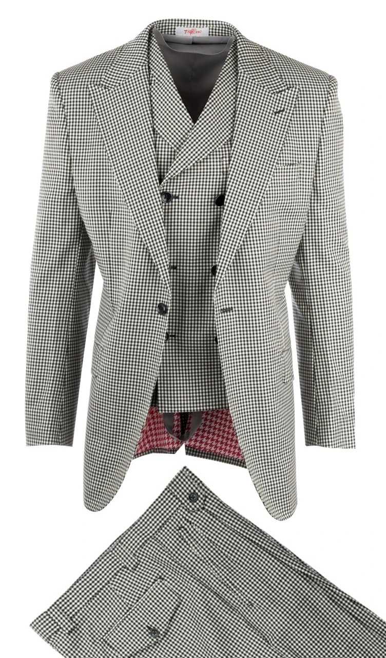 Tiglio Wide Leg Vested Italian Wool Suit – Black & White Check