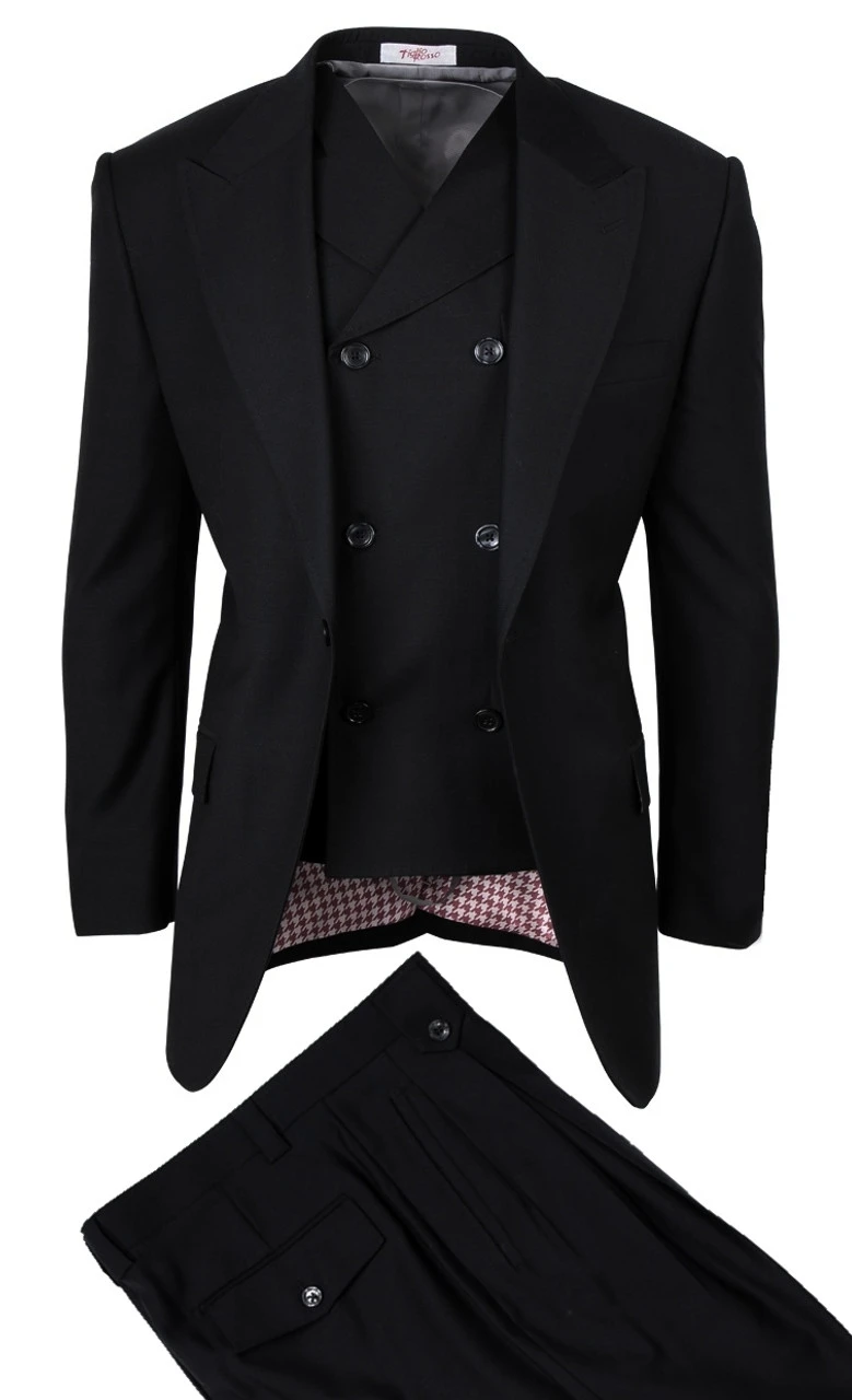 Tiglio Wide Leg Vested Italian Wool Suit – Black