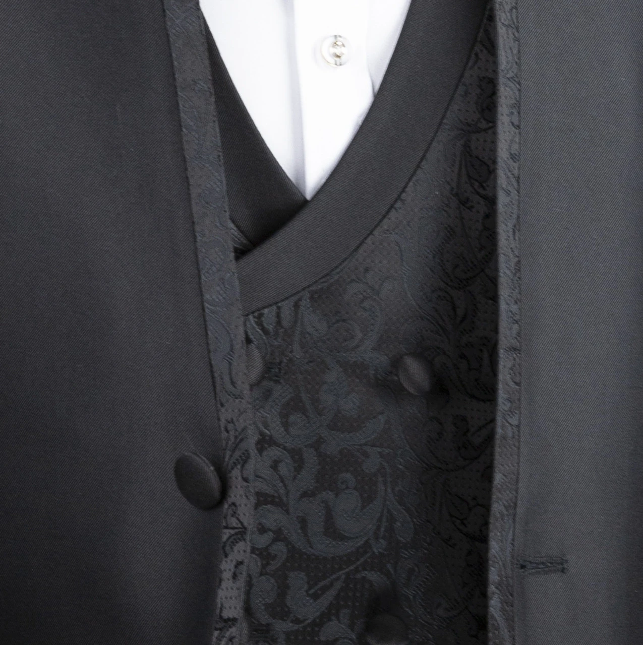 Vinci 3 Piece Collar-less Floral Pattern Vested Fancy Suit – Black