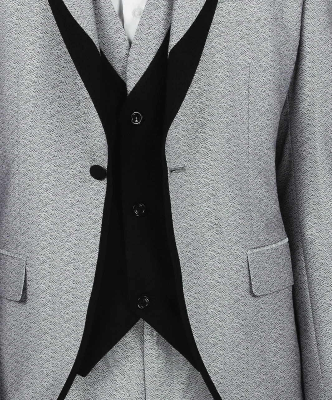 Vinci 3 Piece Fancy Grey And Black Slim Fit Tuxedo Or Suit