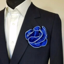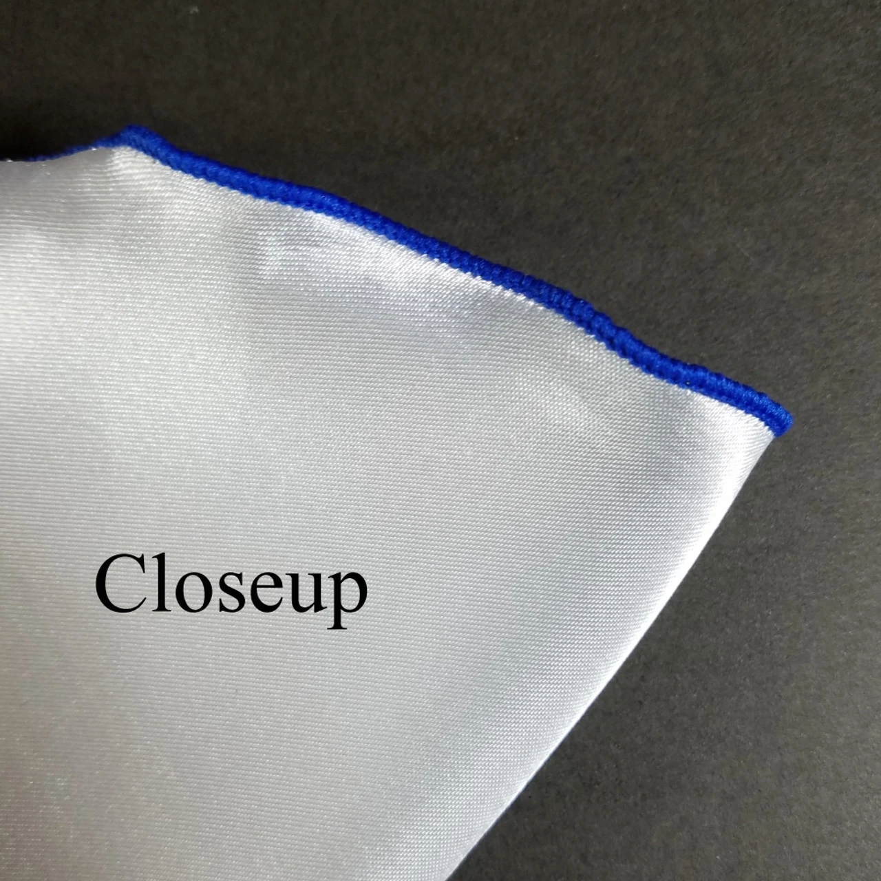 Be the first to review “White Satin 2-in-1 Pouf Round Pocket Square With Royal Blue Trim” Cancel reply