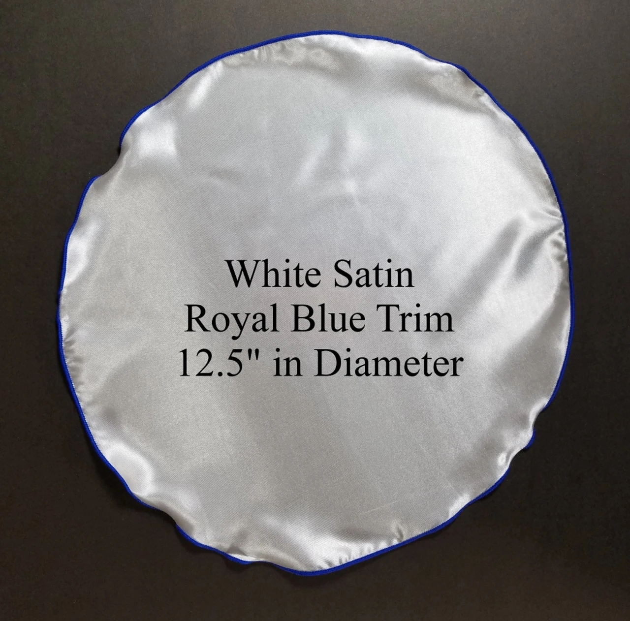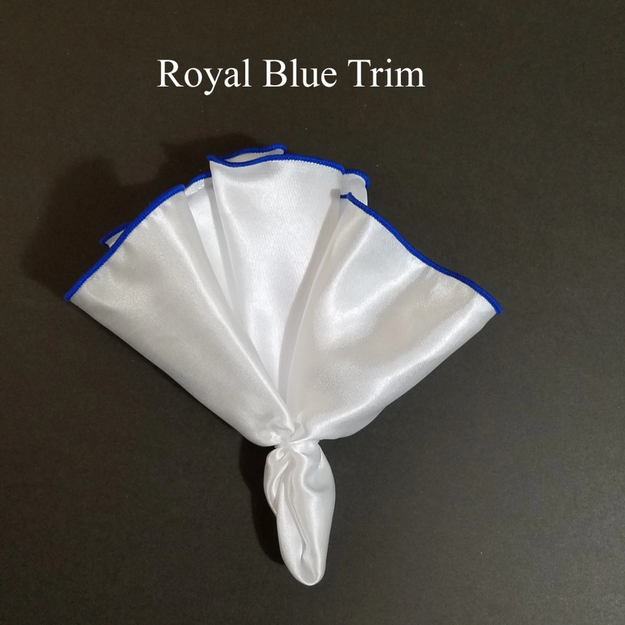 White Satin 2-in-1 Pouf Round Pocket Square With Royal Blue Trim